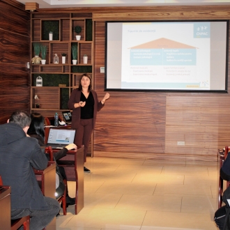 Carolina BAGRIN, manageră a Centrului regional de asistență integrată a copiilor victime/martori ai infracțiunilor Nord, a prezentat participanților Serviciul de tip Barnahus și specificul activității acestuia.