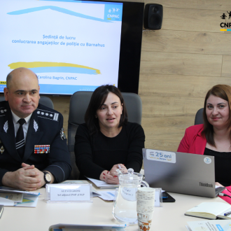 Prezentă în cadrul ședinței de lucru, Natalia TOPOREȚ, asistentă universitară la Catedra de medicină legală a USMF ,,Nicolae Testemițanu”, expertă judiciară a Centrului de Medicină Legală, a vorbit participanților despre prevederile normative care susțin practica de dispunere a efectuării examinărilor medico-legale în cazul copiilor victime ale violenței, în cadrul Centrului Barnahus. Totodată, Natalia Toporeț a îndemnat angajații Poliției să colaboreze cu specialiștii de la Barnahus imediat ce sunt alertați despre o situație de violență a copiilor, astfel încât examinarea medico-legală să poată fi organizată în cadrul Centrului.